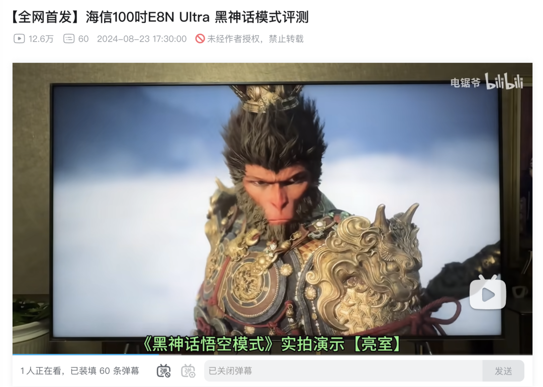 (UP主@电锯爷测评海信大电视的“黑神话模式”)