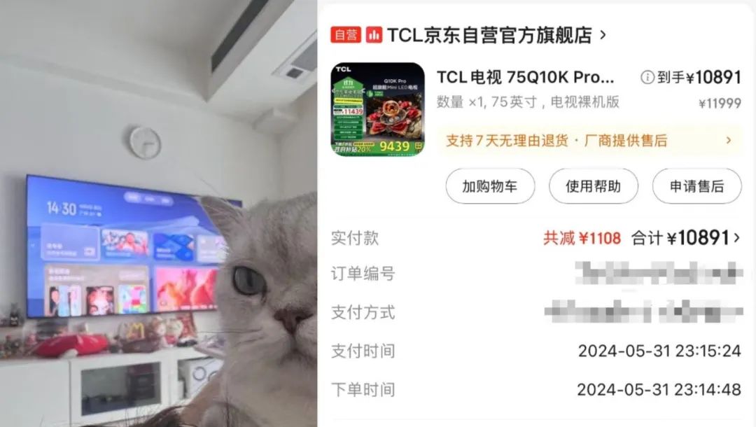 事实上,今年大屏电视单价更低的原因之一,是从8月开始,家电行业有国家补贴、以旧换新等活动。举个例子,原本线上要一万六的索尼大屏电视,最终到手只要一万一千多。