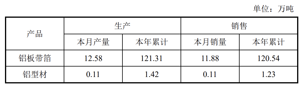 明泰铝业11月4日公告,10月铝板带箔的销量为11.88万吨,本年累计销量为120.54万吨。10月铝型材的销量为0.11万吨,本年累计销量为1.23万吨。