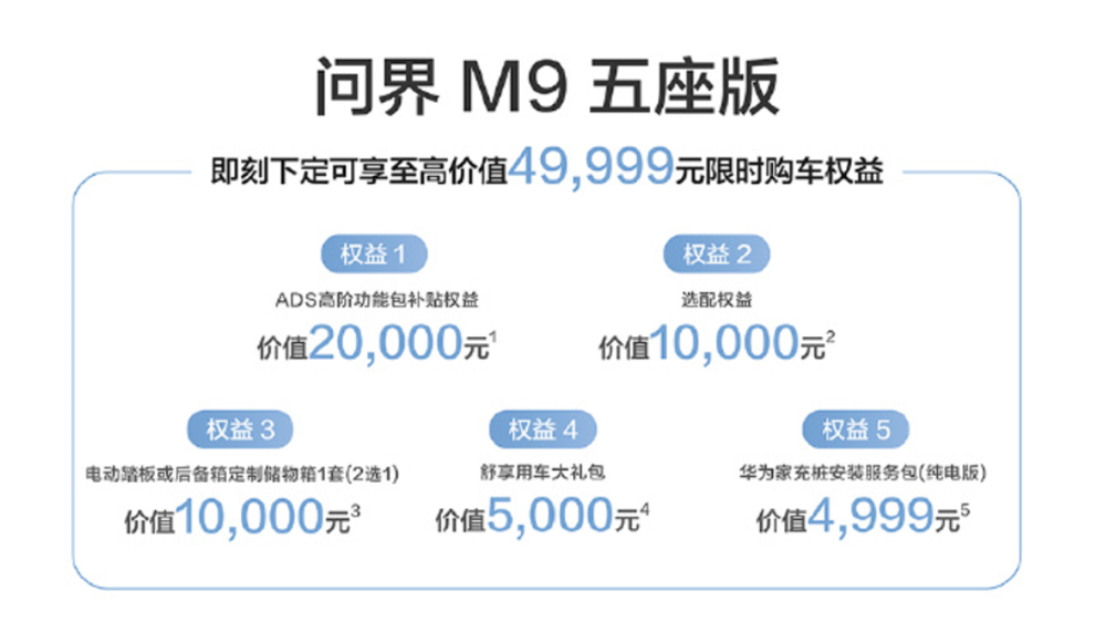▲问界M9五座版购车权益