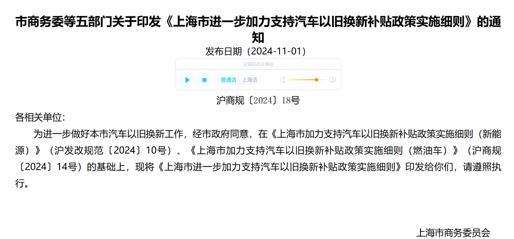 ▲《上海市进一步加力支持汽车以旧换新补贴政策实施细则》