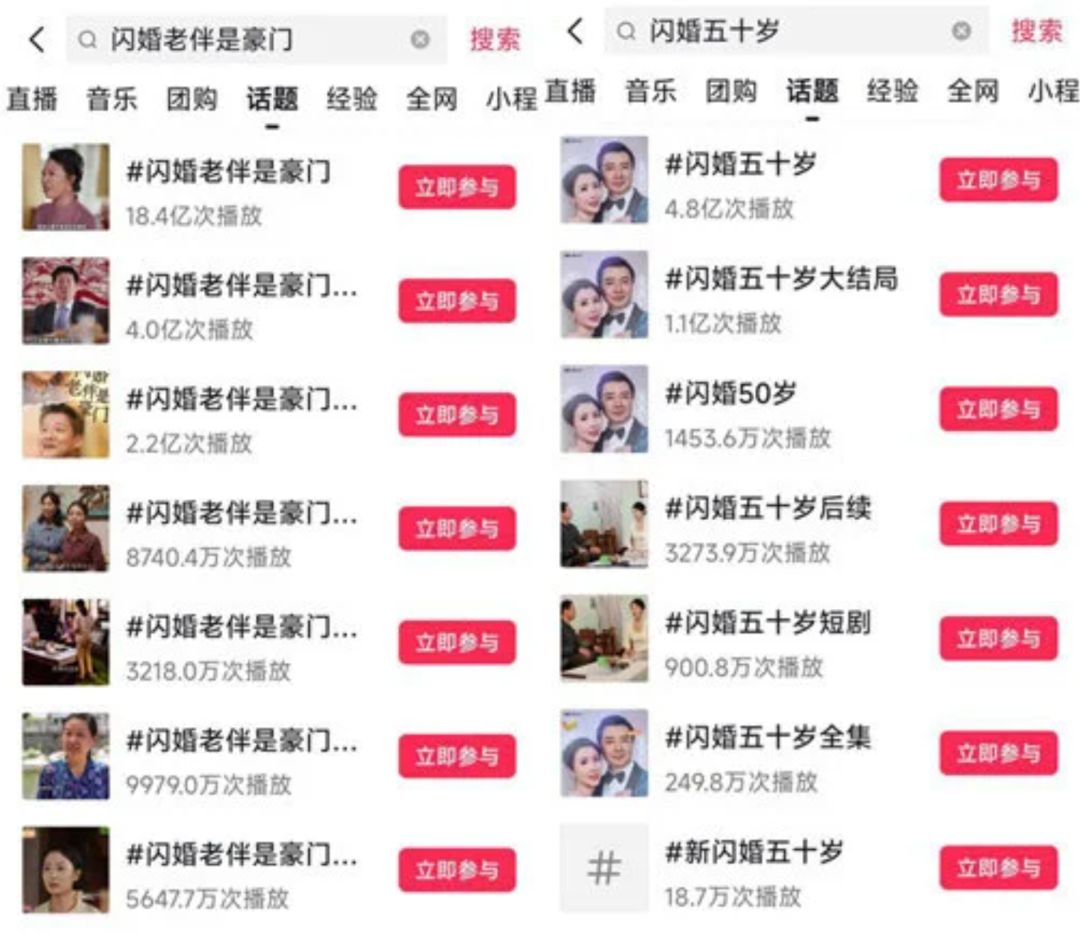 当《闪婚五十岁》、《保洁老妈无极归来》等爆款出现后,诸多相似题材便蜂拥而至,第一时间批量复制,试图在中老年市场开疆拓土。