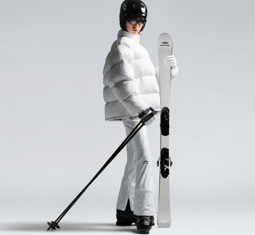 巴黎世家(Balenciaga)最新滑雪服系列包括创新升级的阿拉斯加靴子、高性能水晶石滑雪板、迷彩派克大衣、连体滑雪服等,以及滑雪板、头盔、手套、针织帽等配件。
