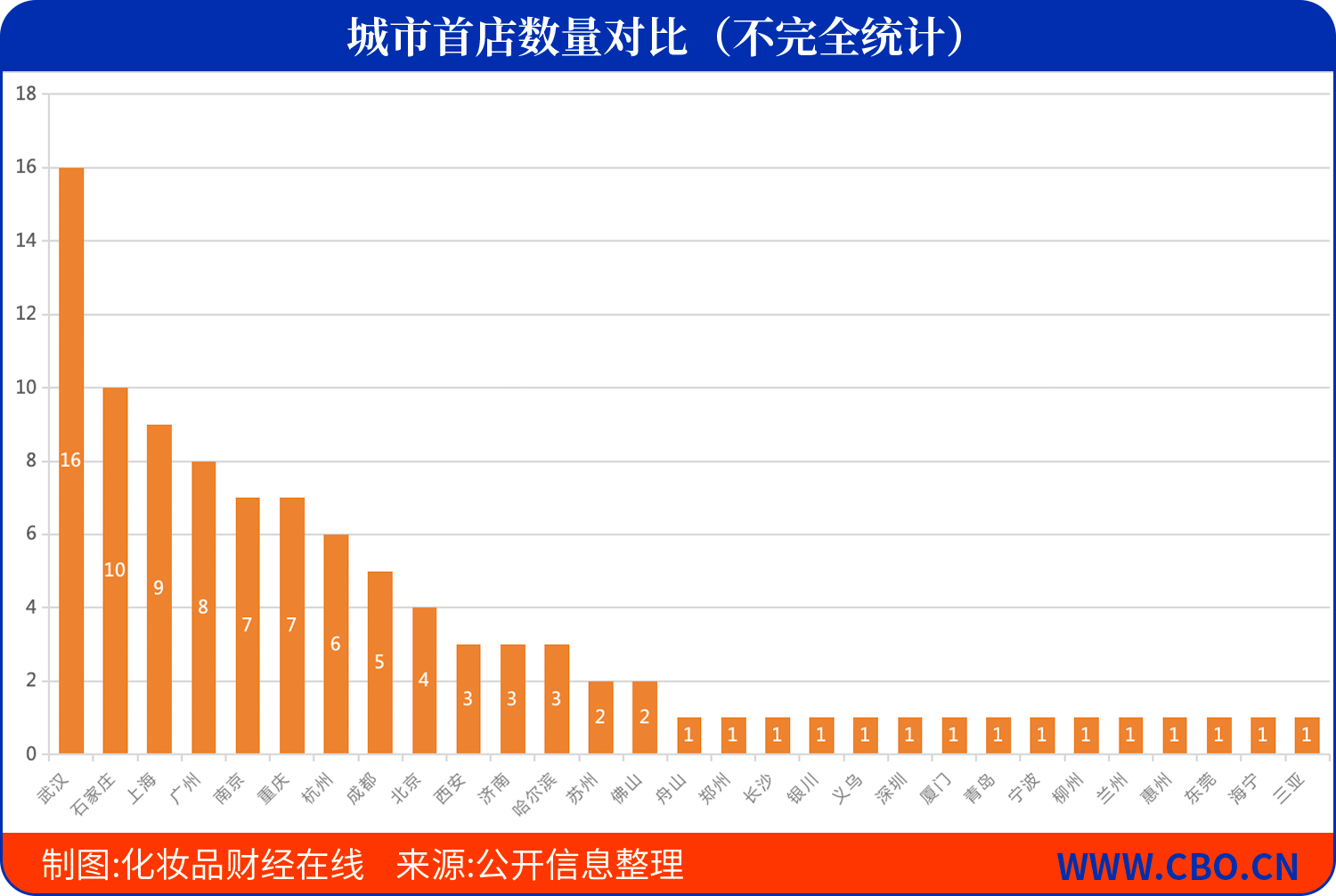从城市首店的分布可以看出,国际品牌“首店经济”下沉趋势更为明显。武汉成为今年的“首店收割机”,是首店进驻最多的城市。据CBO不完全统计,今年以来至少有16家美妆相关的品牌将湖北首店甚至华中首店落地武汉,其中有15家都进驻了武汉SKP。