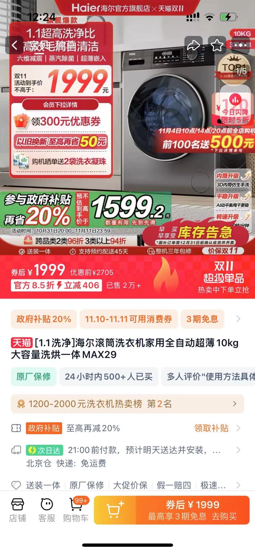 幸运的是,今年最终还有“国补”兜底——不出意外,今年双11销量增长最快的品类应该就是国补相关的大家电类。