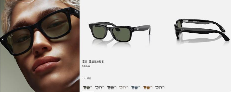 目前,苹果的竞争对手——Meta已经在更轻便的头戴式设备领域前进了一大步。Meta共推出两款智能眼镜,第一代是与知名眼镜品牌雷朋合作推出的Ray-Ban Meta,于2023年9月首次发布,10月开始销售,售价299美元起。