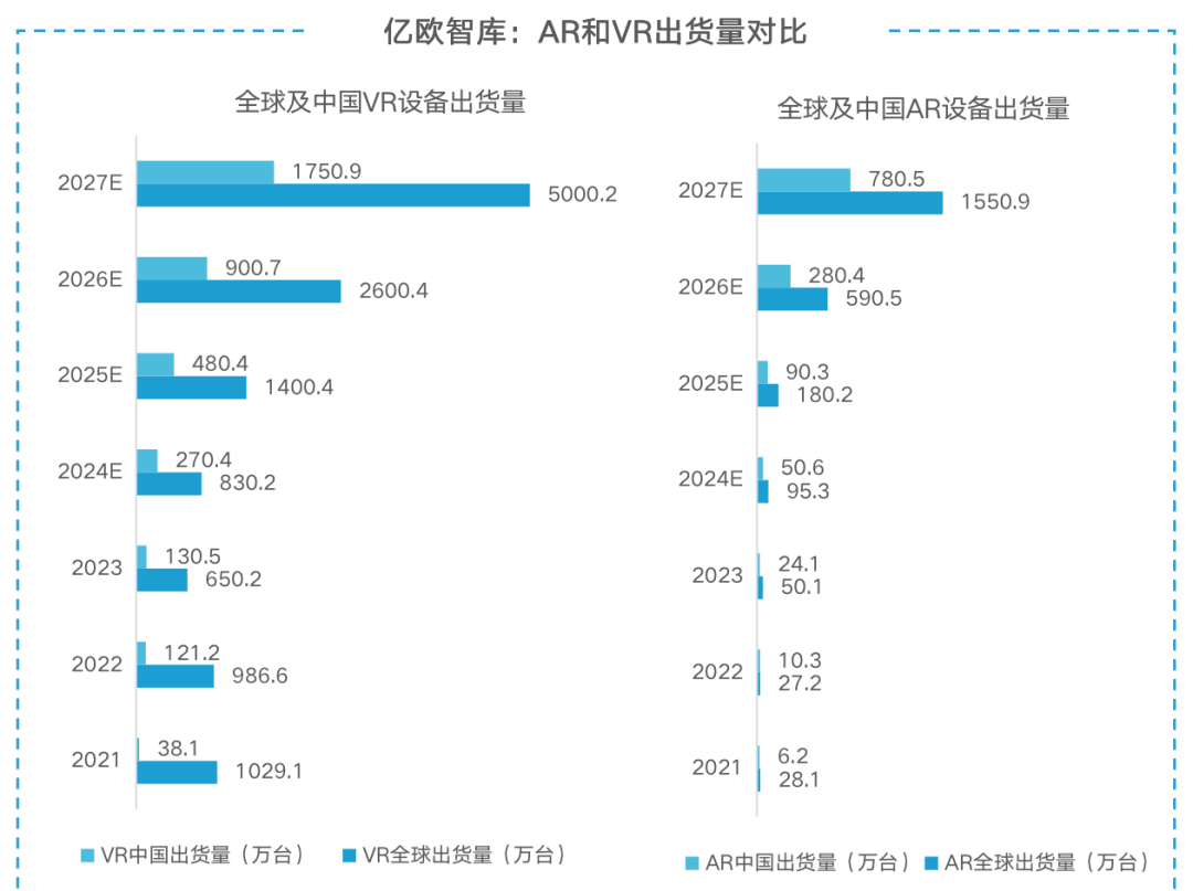 数据显示,2023年全球AR设备出货量同比增长84.19%,中国出货量占其中48.1%。而且对于2024年,市场对于AR给出的预期更高,将实现再次翻倍增长,全球出货量或达95.3万台,且中国出货量将会占据50.6万台。