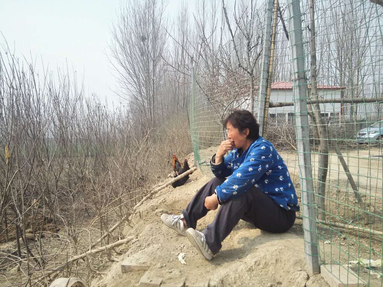 这天上午,田桂荣卷上肥大的裤脚,进入养殖园的树丛中。她边挪动脚步,边打量眼前的每一棵树,不时用粉笔做上记号。期间,一根长约一米的葡萄藤蔓勾住了她的裤子,她毫未察觉。枯藤在她穿越半片树丛后落下,她的裤脚早已被抖落,被鞋跟踩进泥里。