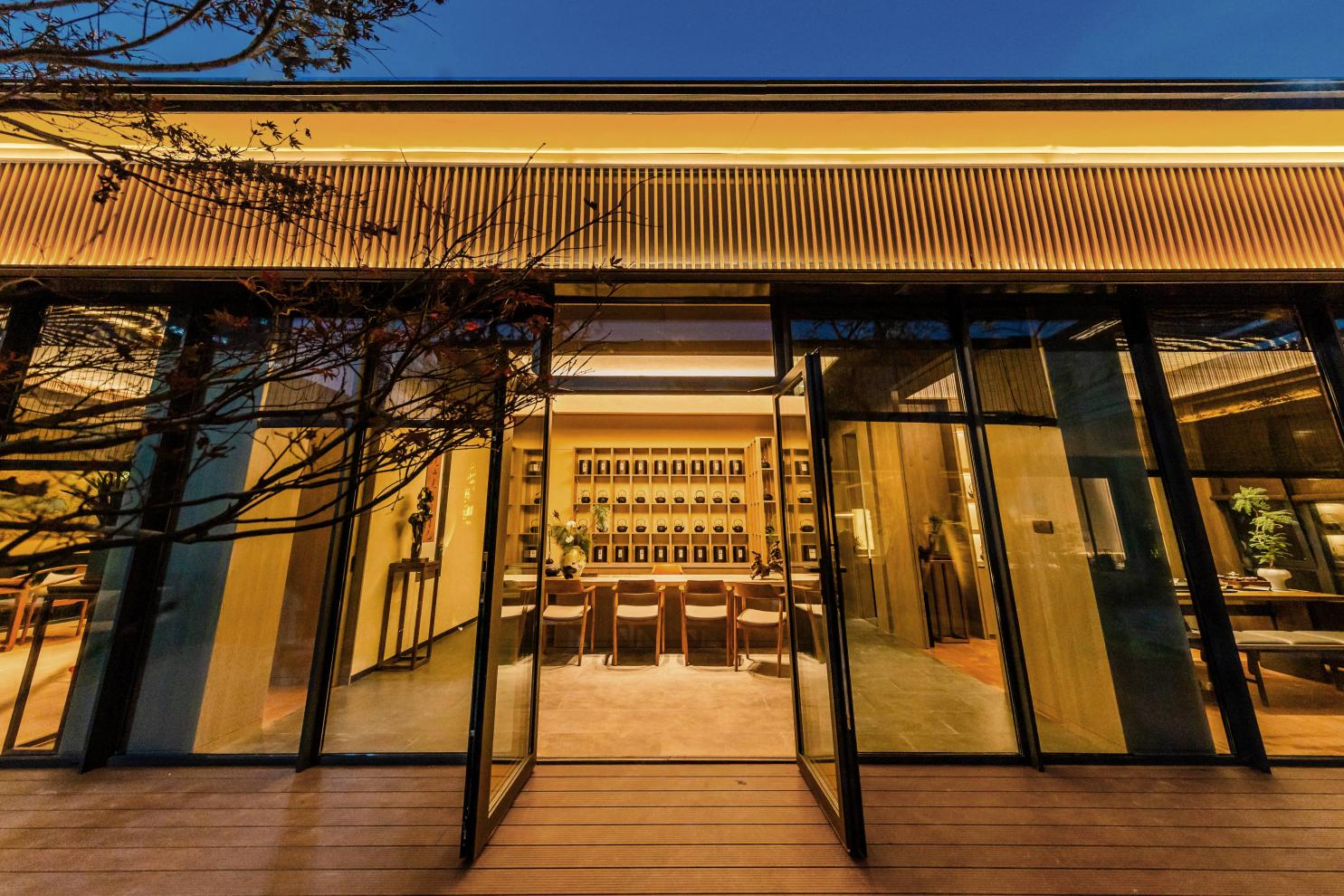 院中几棵乌桕、石榴树让空间通透而松弛,中国黑石的纹路和神韵每一寸都散发时间沉淀的美感。