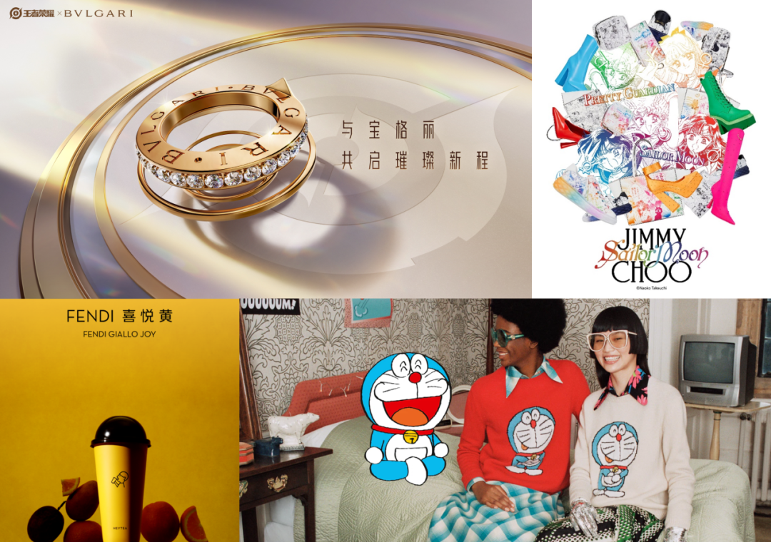 此外,据公开消息,巴黎世家在上海举行宛如秀场的行为艺术展吸引艺术青年的关注;宝格丽联名王者荣耀推出了首款数字珠宝皮肤吸引年轻的游戏爱好者;《美少女战士》问世30周年之际,Jimmy Choo牵手原作者武内直子推出联名系列;Gucci也与哆啦A梦、迪士尼等展开IP联名。