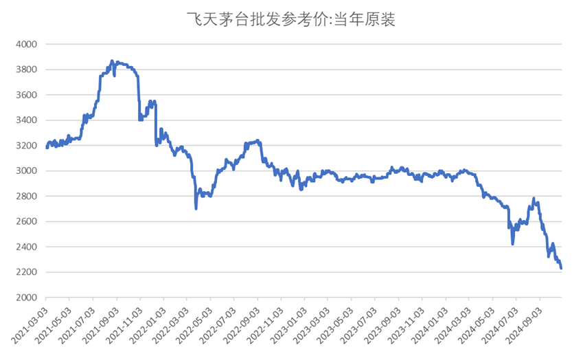 但和去年相比,还有不小的差距。去年一整年,飞天茅台的市场零售价还能保持在3000元上下的水平。