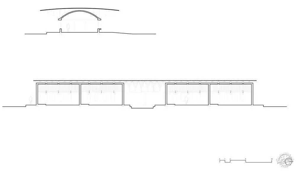 这种拱形屋顶和进一步加强的通风隔热结构设计,从里面看教室,有足够的光线,同时也保证了通风透气,窗子的颜色很美。