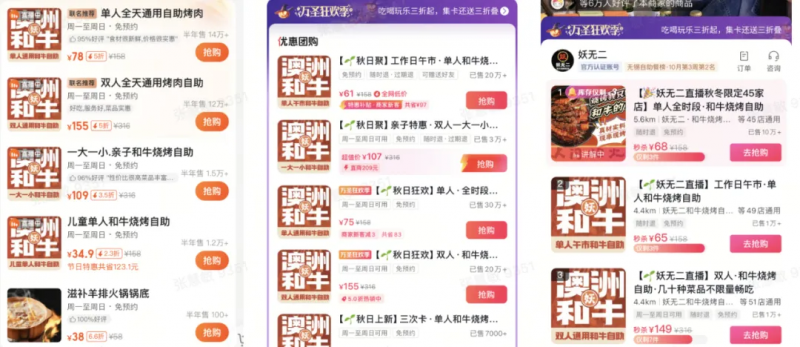 和徐升记一般,区域新锐烧烤品牌“妖无二和牛烧烤自助”也采取了官号自播+达人直播的方式,将品牌产品、服务和体验的吸引力不断放大,撬动消费活力。