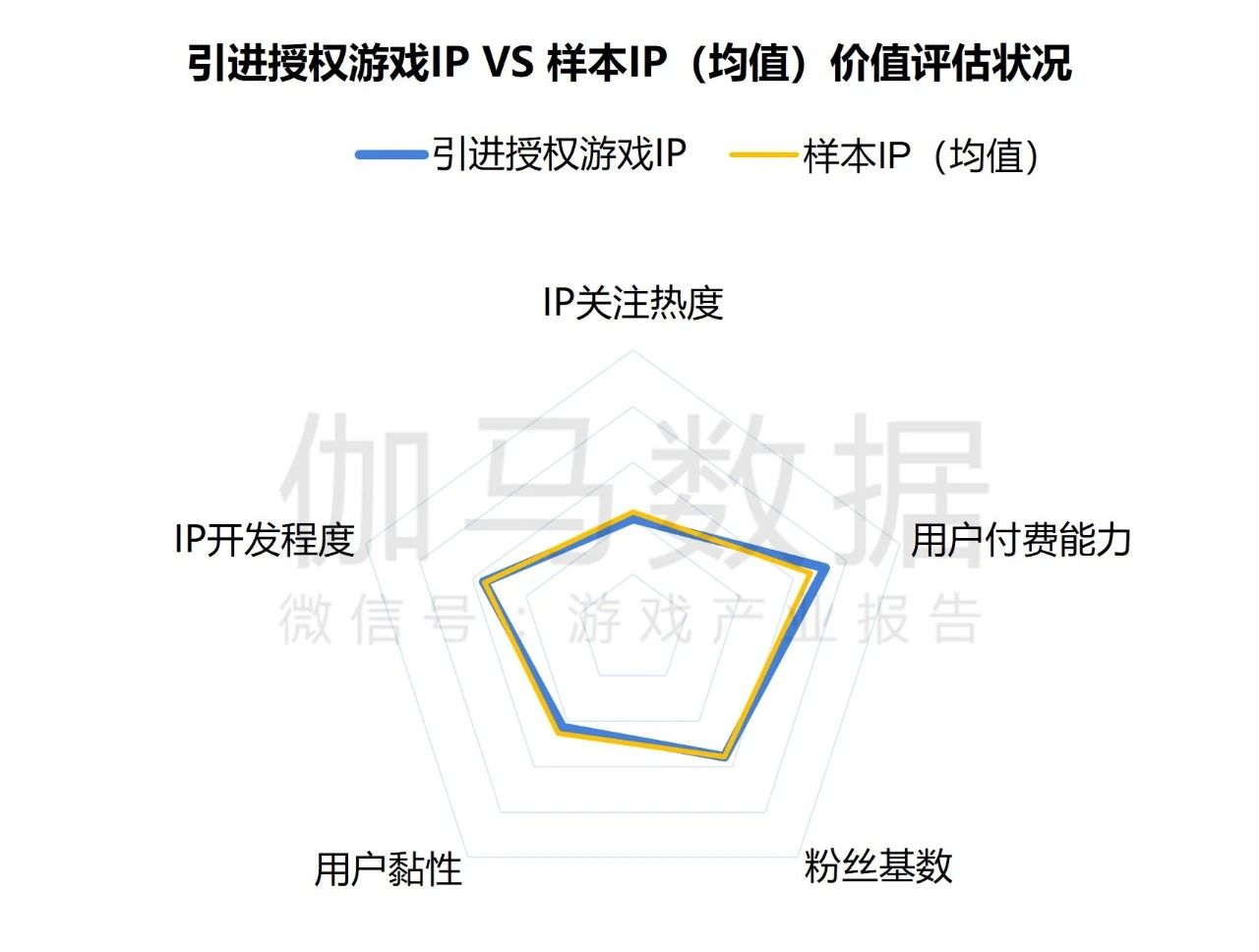 聚焦IP内部,引进授权游戏IP呈现“整体价值评估较均衡,但个体IP差异较大”的特征。其中,整体较均衡在于,引进授权游戏IP各项指标的得分均接近整体样本得分。