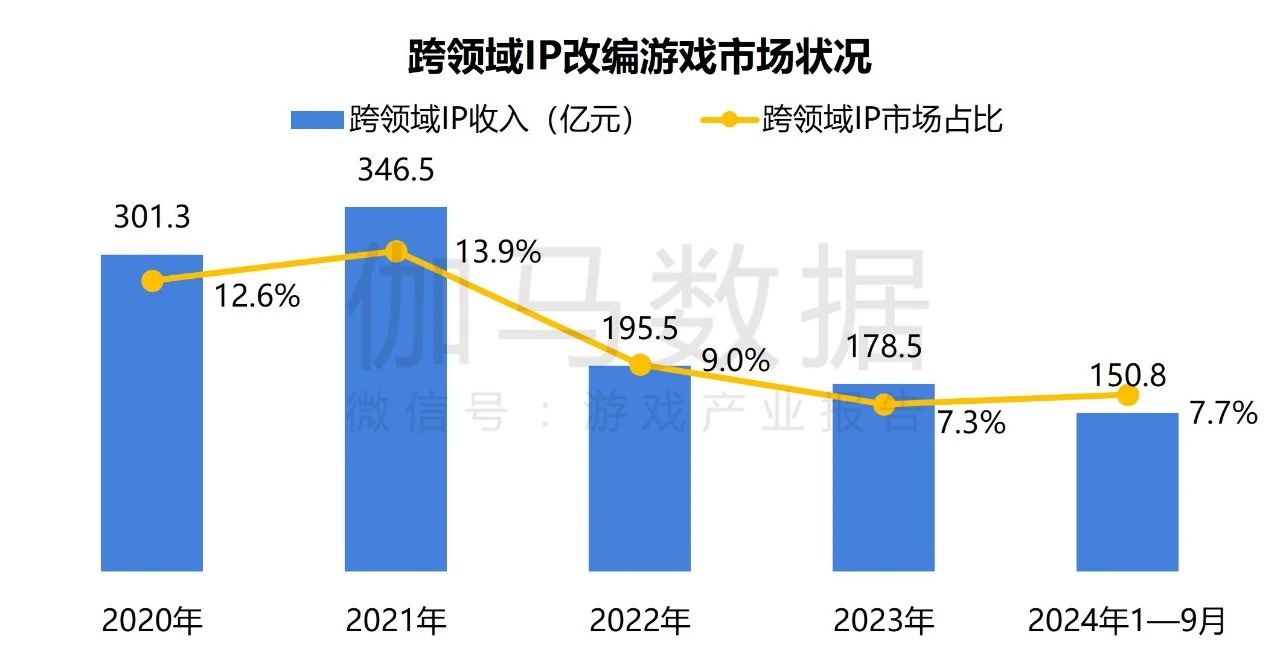 2024年1—9月,中国游戏IP市场实际销售收入达1960.6亿元,预计全年收入高于上一年水平