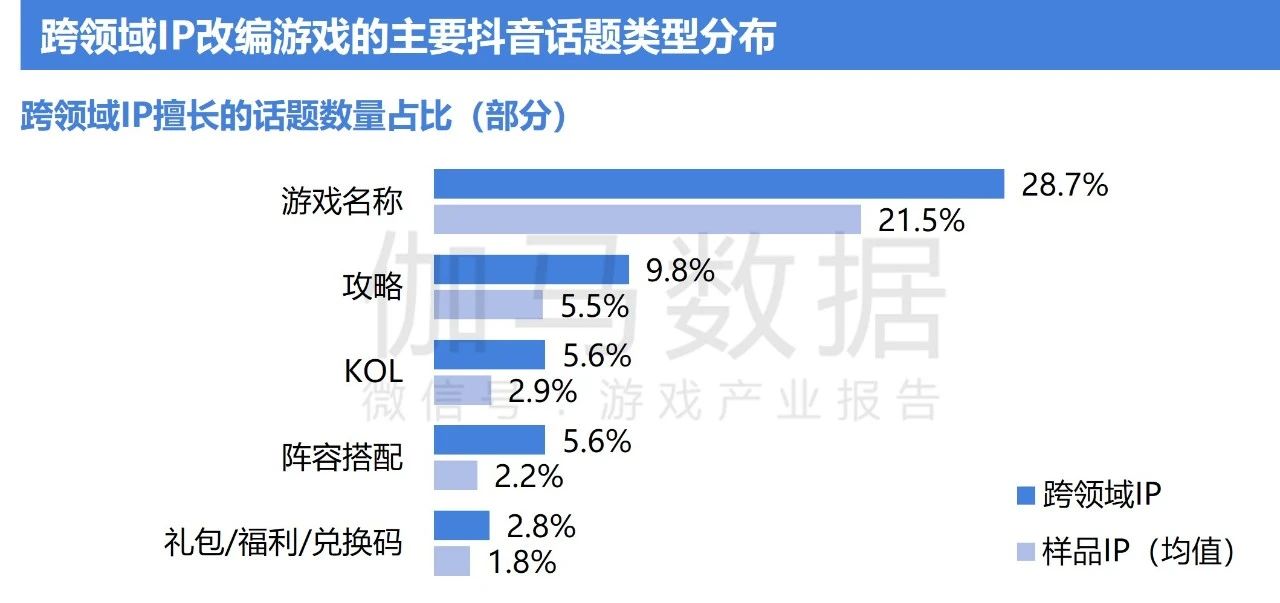 以“触达用户”为例,跨领域IP改编游戏发布的话题更多服务于已有的游戏用户,例如攻略、阵容搭配等类型,但上述话题均以用户“了解该游戏”为前提,使得其“知识门槛”很难引起潜在游戏用户的兴趣,而潜在游戏用户感兴趣的内容,例如破圈的游戏梗、联名/联动、IP衍生等话题,跨领域IP改编游戏却少有布局,布局内容的错位一定程度阻碍游戏获取新用户。