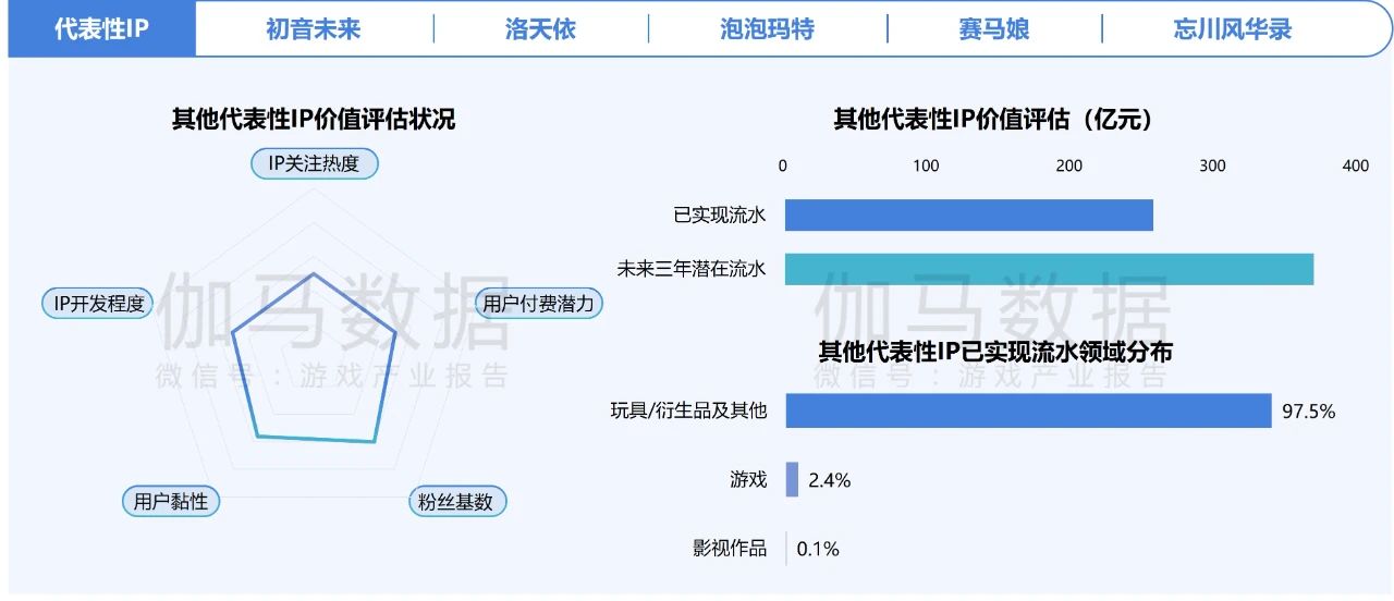 数据来源:伽马数据(CNG)注:IP开发程度、流水统计范围为国内相关的金额(例如游戏、影视领域),且不含IP联名费用、IP代言费用。