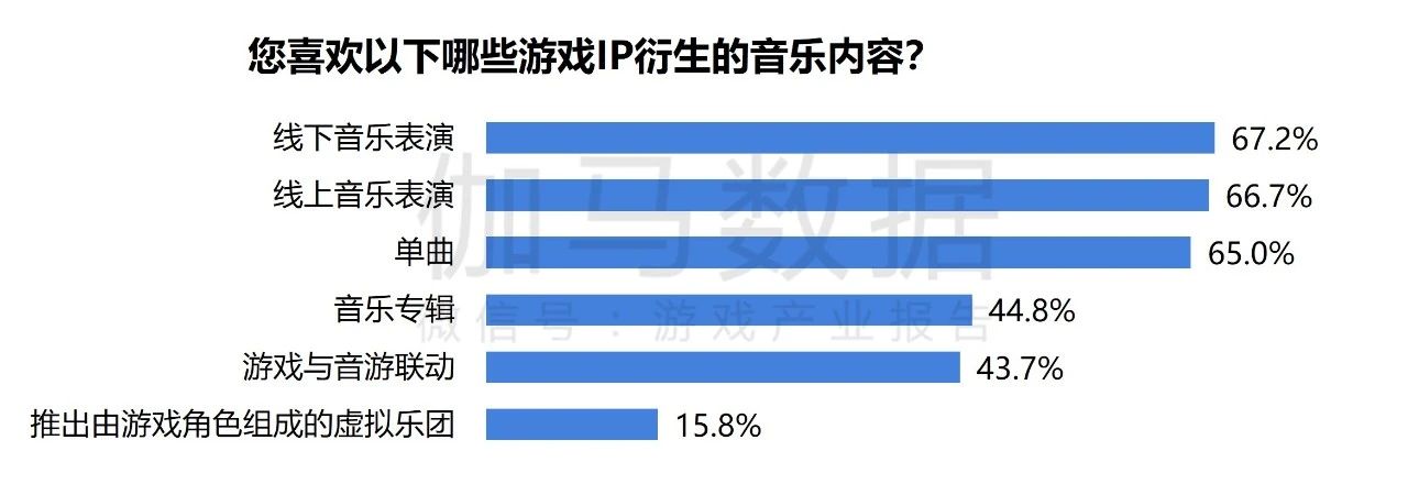 值得注意的是,研究结果显示游戏音乐在价值更为广泛的基础上,还具备“相对蓝海”的特征:深入布局游戏音乐的企业仍属少数,且超50%的用户期待接触多元的音乐内容。未来,游戏音乐或成企业提升IP价值的重要切入口。