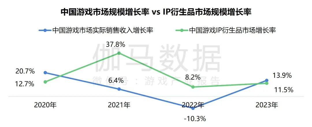 衍生品是近年发展较快的领域之一,部分年份的规模增速已超过整体游戏产业。