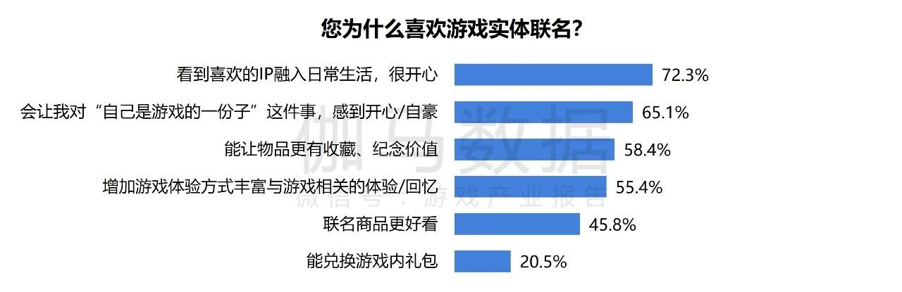偏好实体联名的成因中,选择“可以融入日常生活”的用户占比最高,达7成以上,也是此类运营形式的突出特征之一。