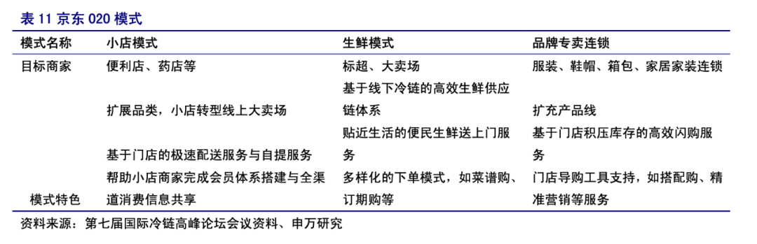 京东最早做生鲜始于2013年前后,基于O2O战略,京东与线下便利店、卖场进行合作,消费者可以在京东上找到最近的线下便利店,这些便利店也可以在京东平台上开设线上卖场、生鲜超市等业态。
