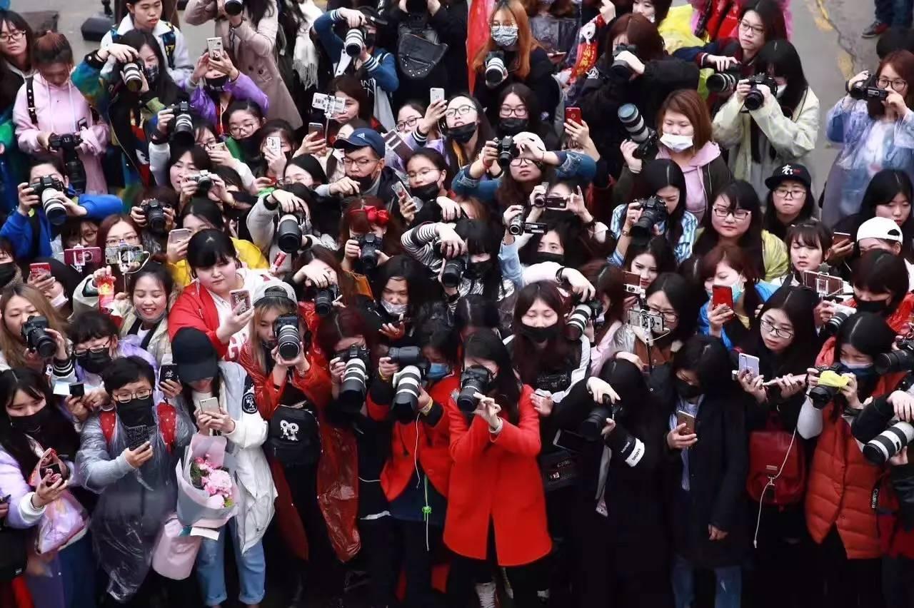 尽管现场细雨蒙蒙,但粉丝的依然热情高涨,从鲜花、条幅、海报,到为记者准备印有自家idol卡通形象的衍生品,环环相扣,有条不紊。现场不少记者表示,没想到这样一部小小的网剧,竟然能有这么雄厚的粉丝基础。