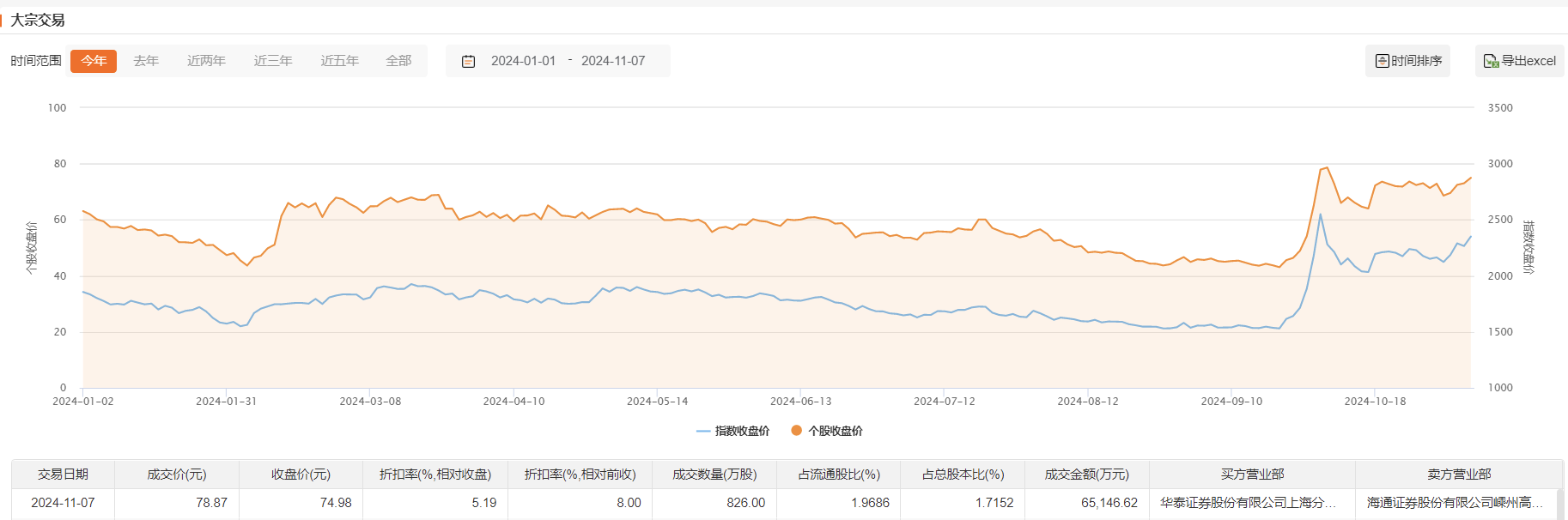 11月7日,北京君正今日大宗交易成交826万股,成交额6.51亿元,占当日总成交额的35.1%,成交价78.87元,较市场收盘价溢价5.19%。