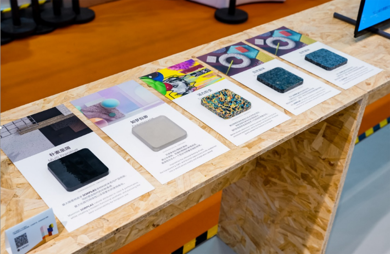 同样在新材料专区出展的还有索尼。谈到索尼,大家都会想到丰富的数码产品和游戏娱乐产业,但在本届进博会上,索尼聚焦新材料,全球首展由环保再生阻燃材料SORPLAS制成的CMF色板样品。记者在展台看到,现场展示了通过3D打印制成的可编辑砖概念模型,并呈现了模拟应用场景。
