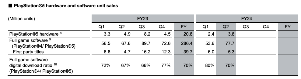 11月8日,索尼集团发布2024财年第二季度财报。财报显示,第二财季PS5主机销量为380万台,上年同期为490万台。