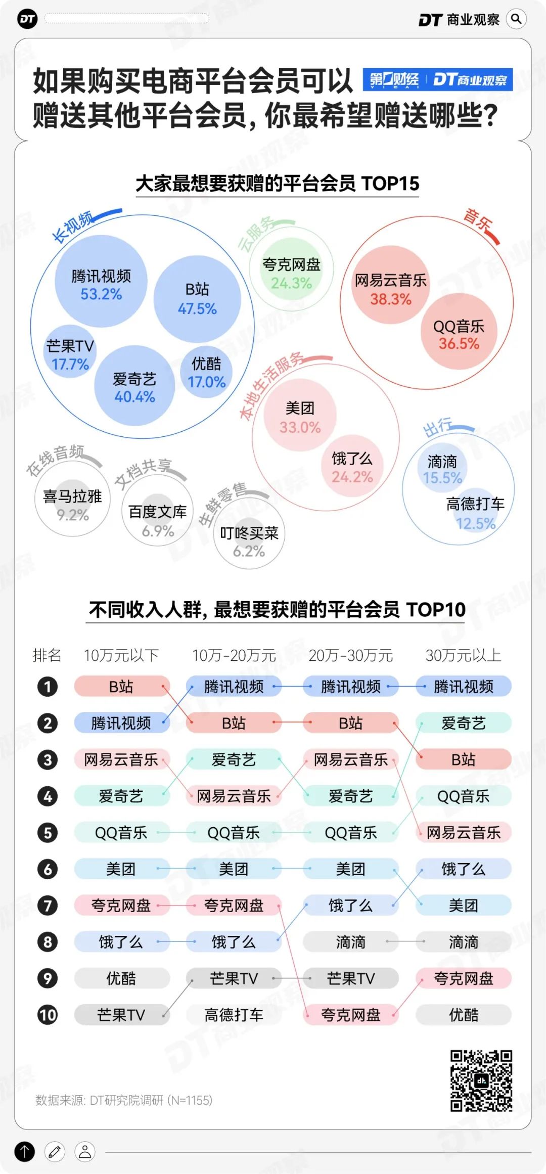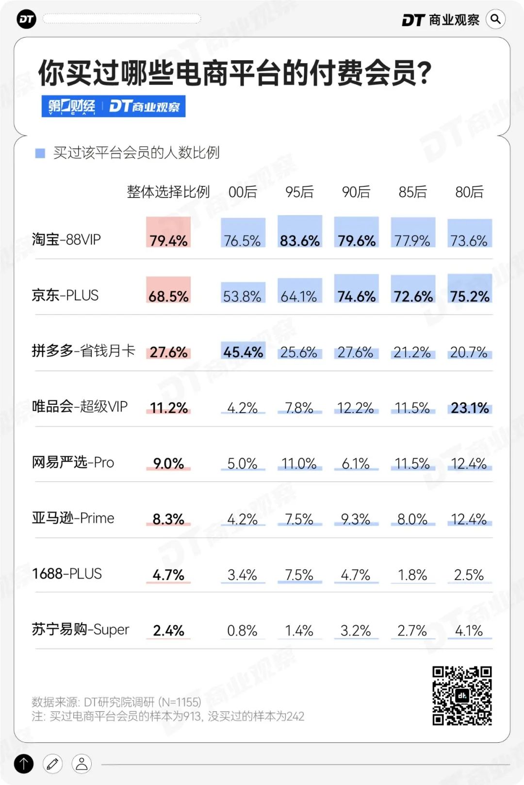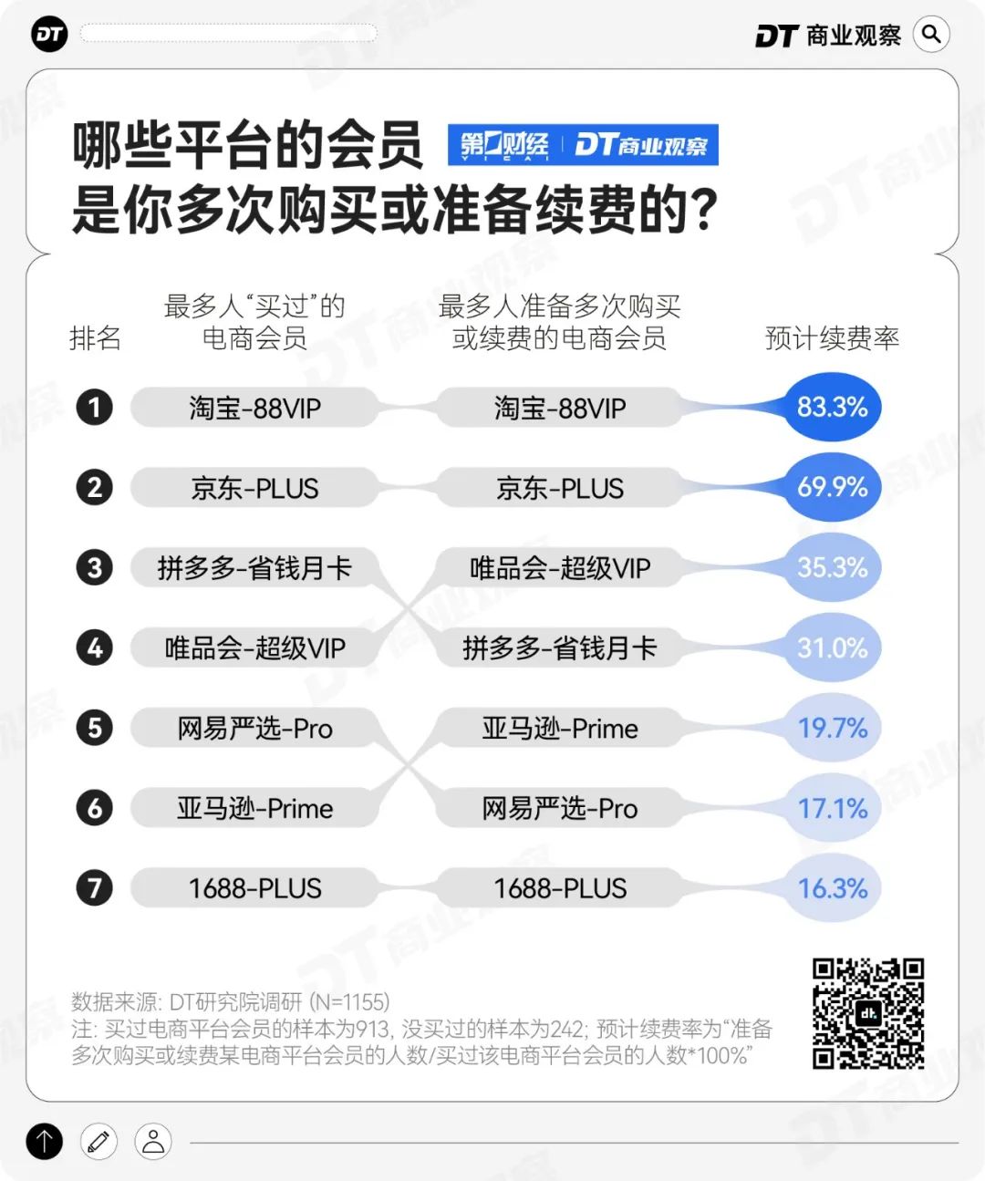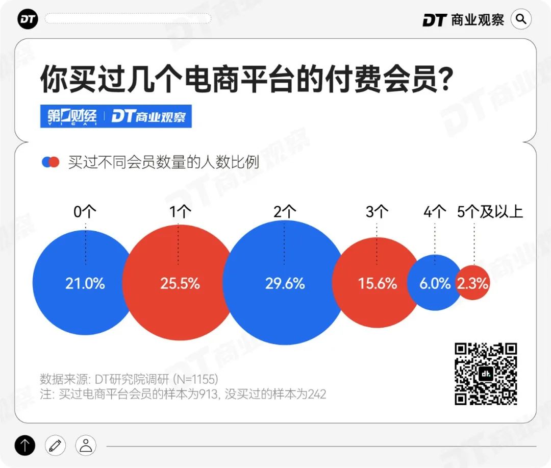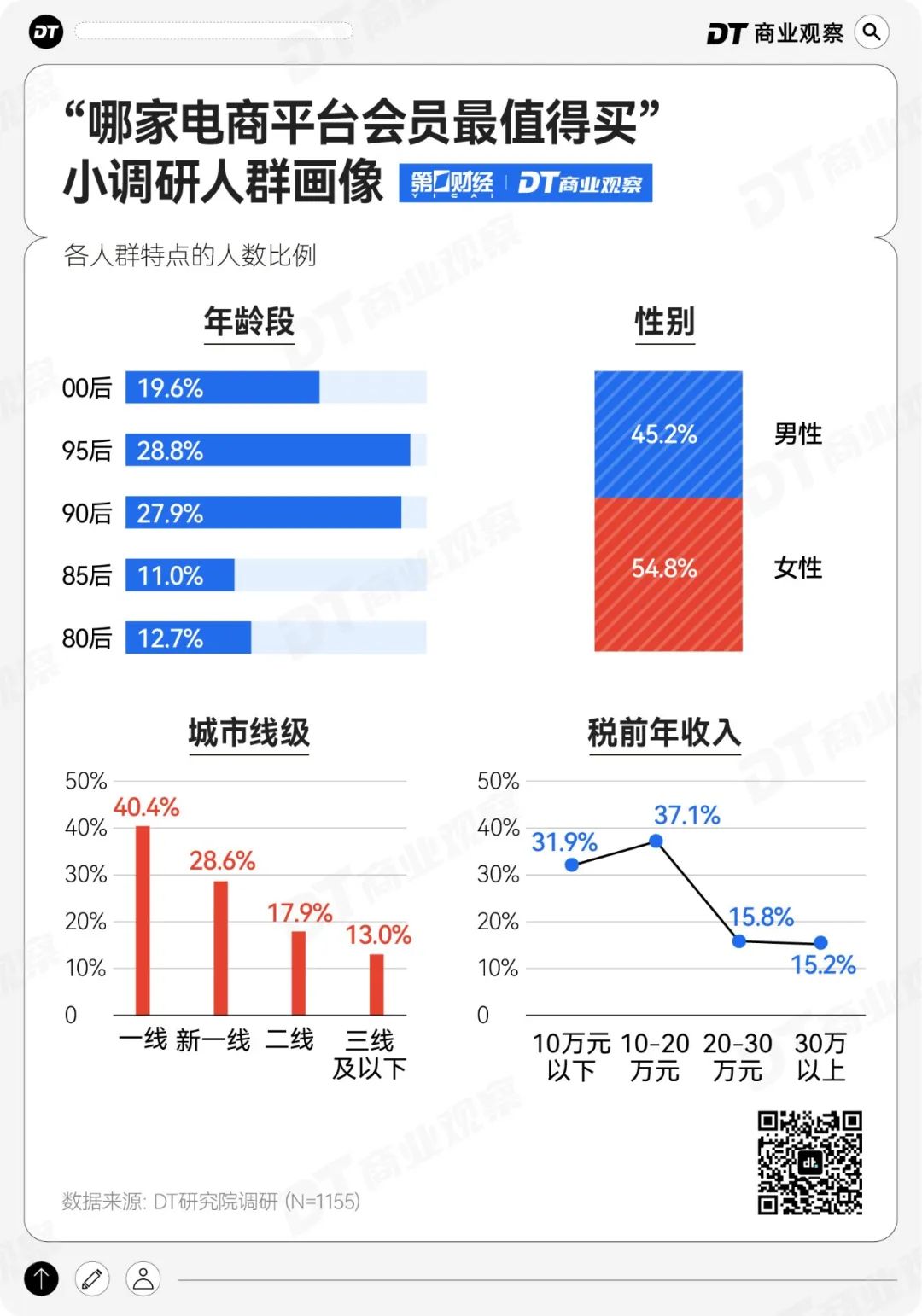 《DT商业观察》联合第一财经发布了《“哪家电商平台会员最值得买”小调研》,总共收到1155份回答,以下是我们的发现。