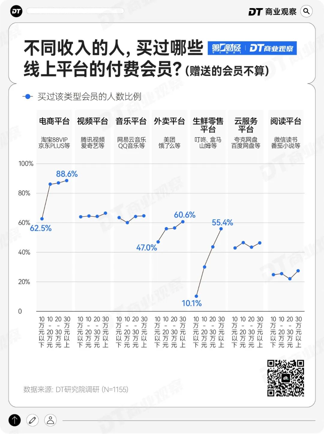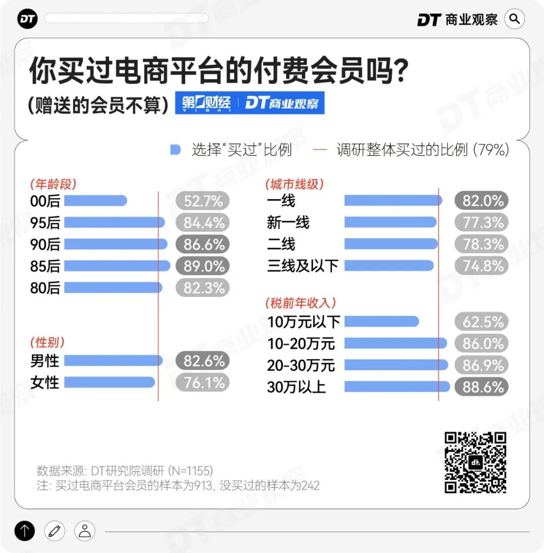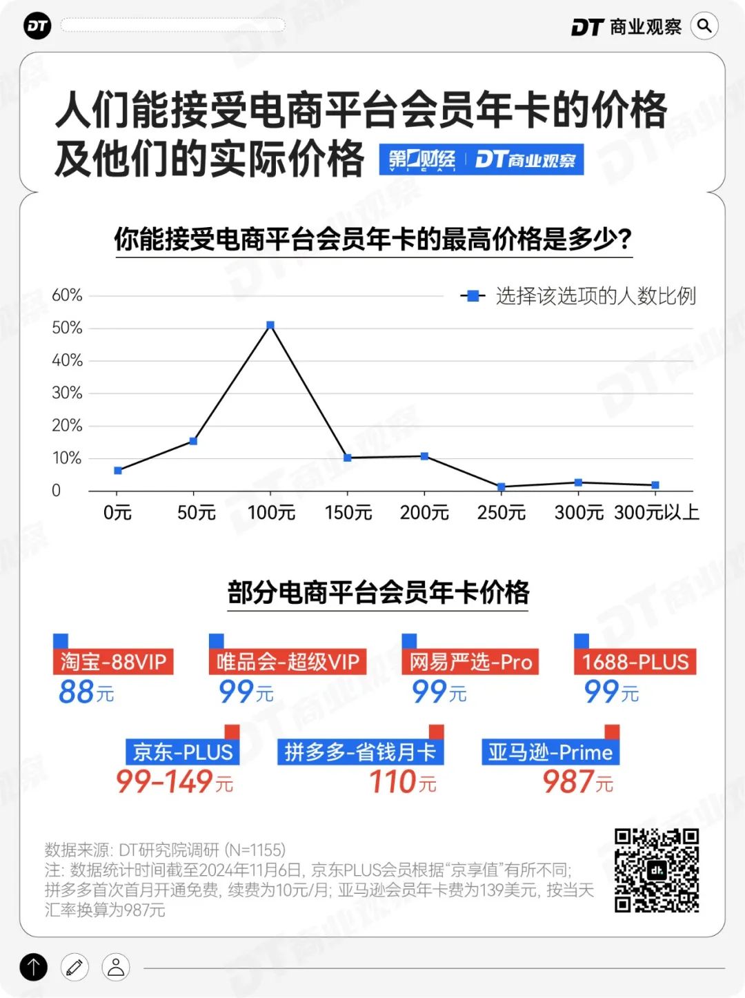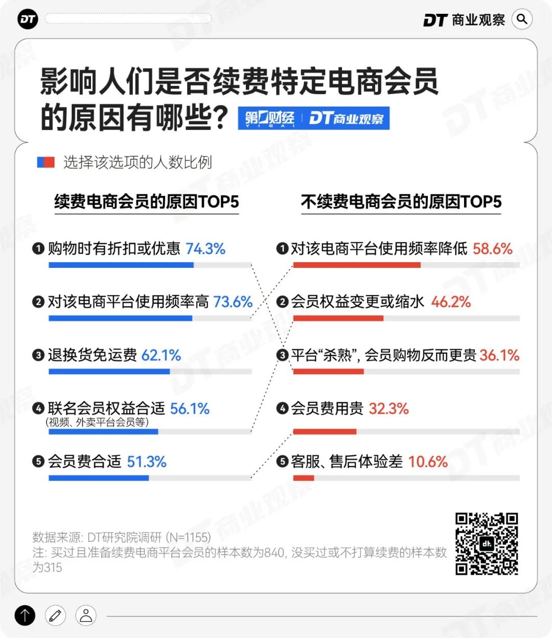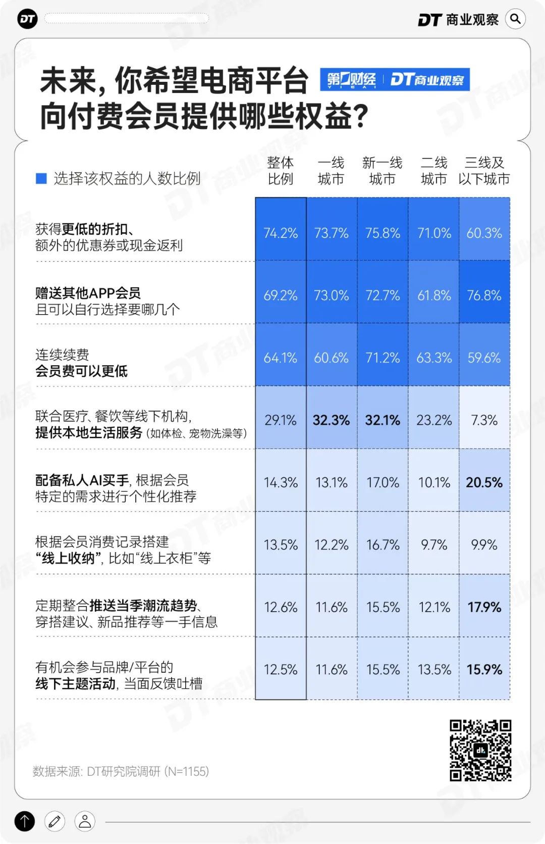 《DT商业观察》联合第一财经发布了《“哪家电商平台会员最值得买”小调研》,总共收到1155份回答,以下是我们的发现。