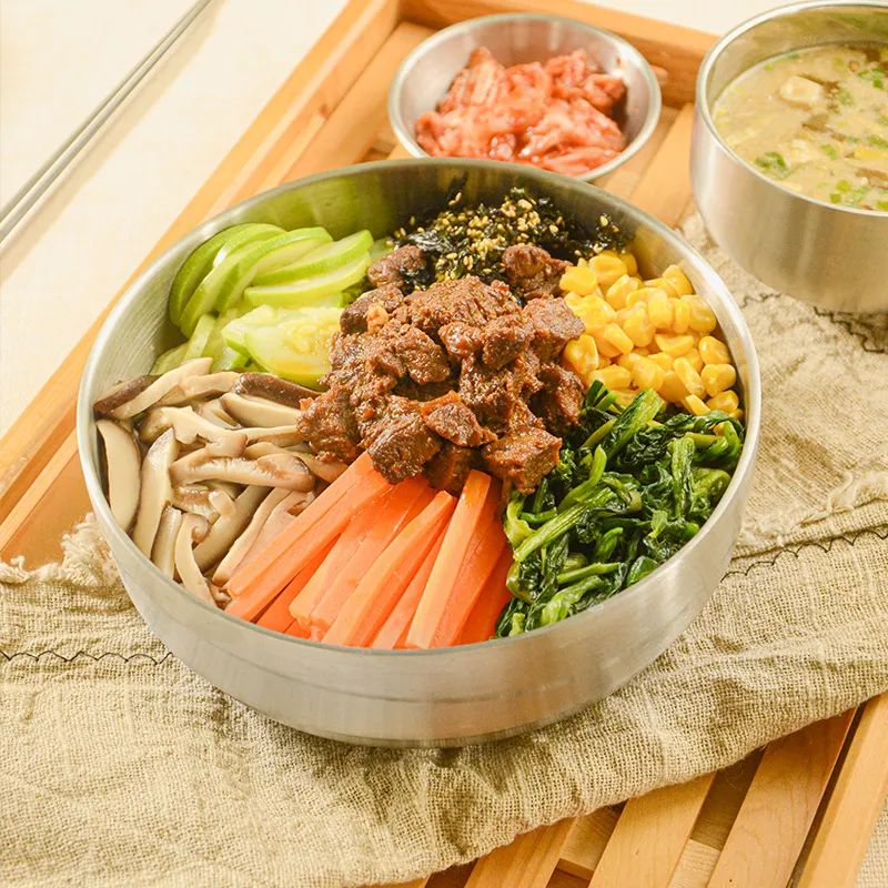 拌饭讲究荤素搭配、营养均衡,一份拌饭中往往会搭配各种蔬菜、肉类。而除常规的猪肉类食材外,一些拌饭店也会利用牛羊肉、鱼肉、鸡肉、鱿鱼等肉类来打造差异化产品。