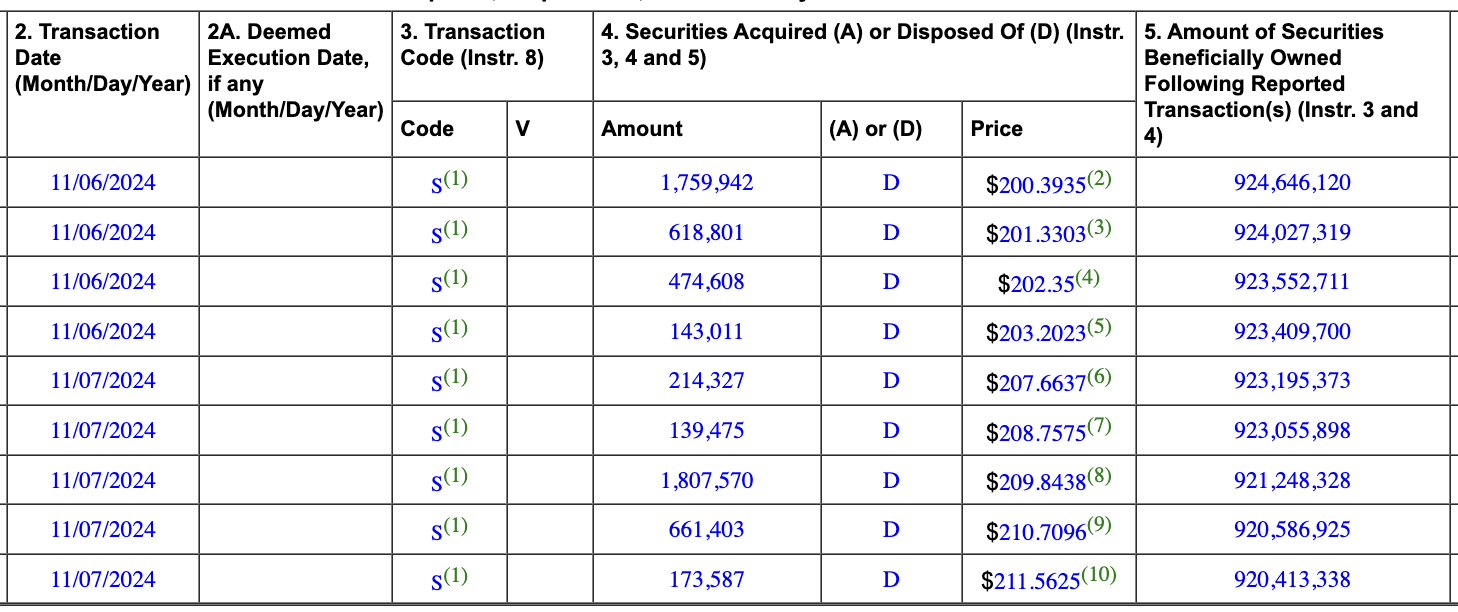 监管文件显示,11月6日至7日,亚马逊创始人杰夫·贝索斯分九次合计卖出599.27万股公司股票,套现12.31亿美元。