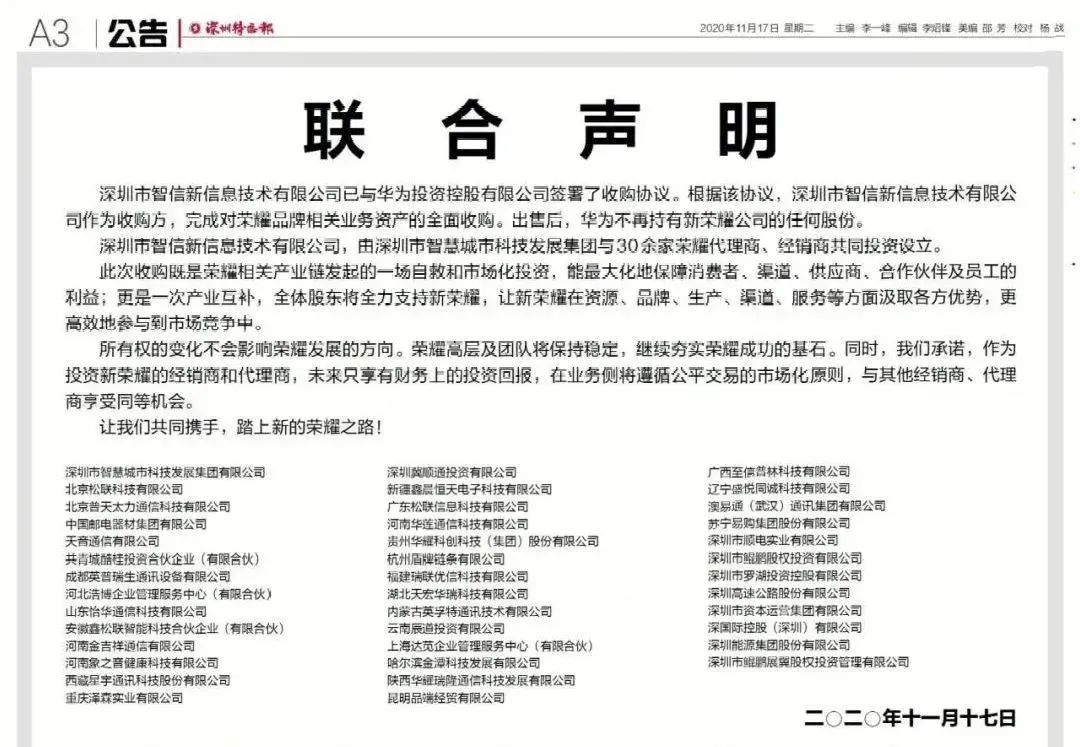 不过当产品能够大范围出货后,也意味着荣耀需要向股东交出成绩。早在荣耀分割后,由多家深圳国资企业及30余家荣耀经销商共同组成的新公司,联合收购了荣耀,而这其中原本大多是华为的线下渠道商。
