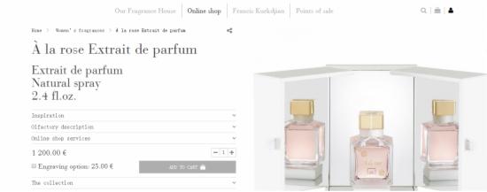 此外,高定位可能也是LVHM看中这个小众香水品牌的关键因素。据了解,MFK香水的价格在130欧元至180欧元不等(约970元-1340元),而特别款àla rose Extrait de parfum的价格为1200欧元(约9000元)。同时,该品牌也提供定制服务,用户可以就某地或某事定制香水,譬如给自己的生日party定制一款香水等。不过,据悉这种定制服务的价格最低要2万欧元(约15万元)左右。