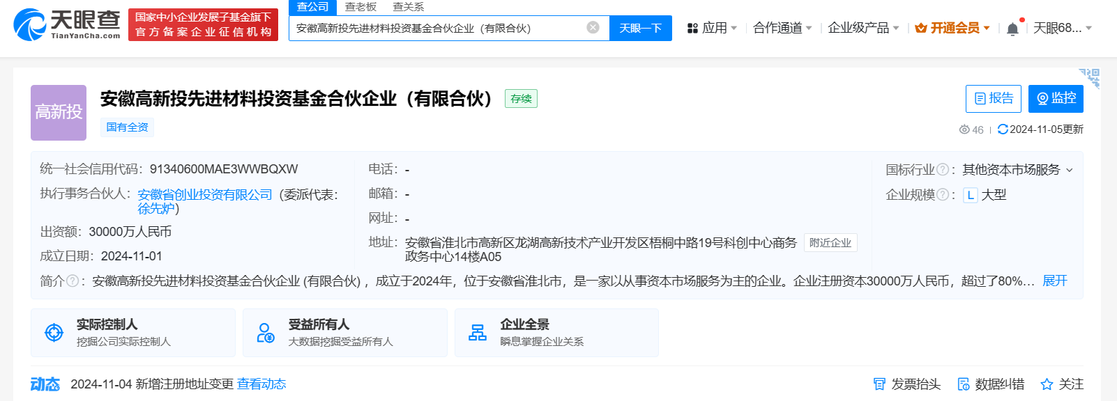 安徽高新投先进材料投资基金合伙企业(有限合伙)成立。