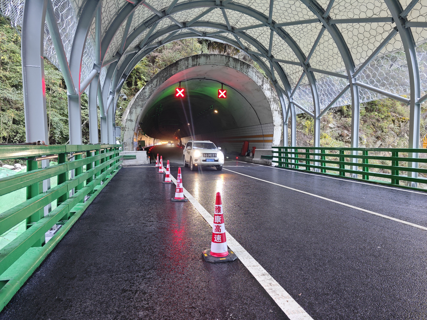 为确保安全通行,雅康高速还采取了新的技防措施,来增加安全指数。具体包括,采用基于气象雷达预报数据的泥石流风险预报技术,对雅康高速沿线日地沟及邻近共计10条泥石流沟进行监控和超算预报,可提前1至2小时自动发送预报信息;在日地沟安装整套临灾预警监测设备,实现了日地沟全流域的泥石流灾害监测预警,高速公路桥位处可提前5至10分钟收到沟道上游爆发泥石流的预警信息,同时也能及时向施工人员和下游村镇预警。同时,在日地沟试点安装应用桥梁损毁紧急示警装置,并通过验收,目前已在雅康高速泸康段6座隧间桥梁双幅应用。
