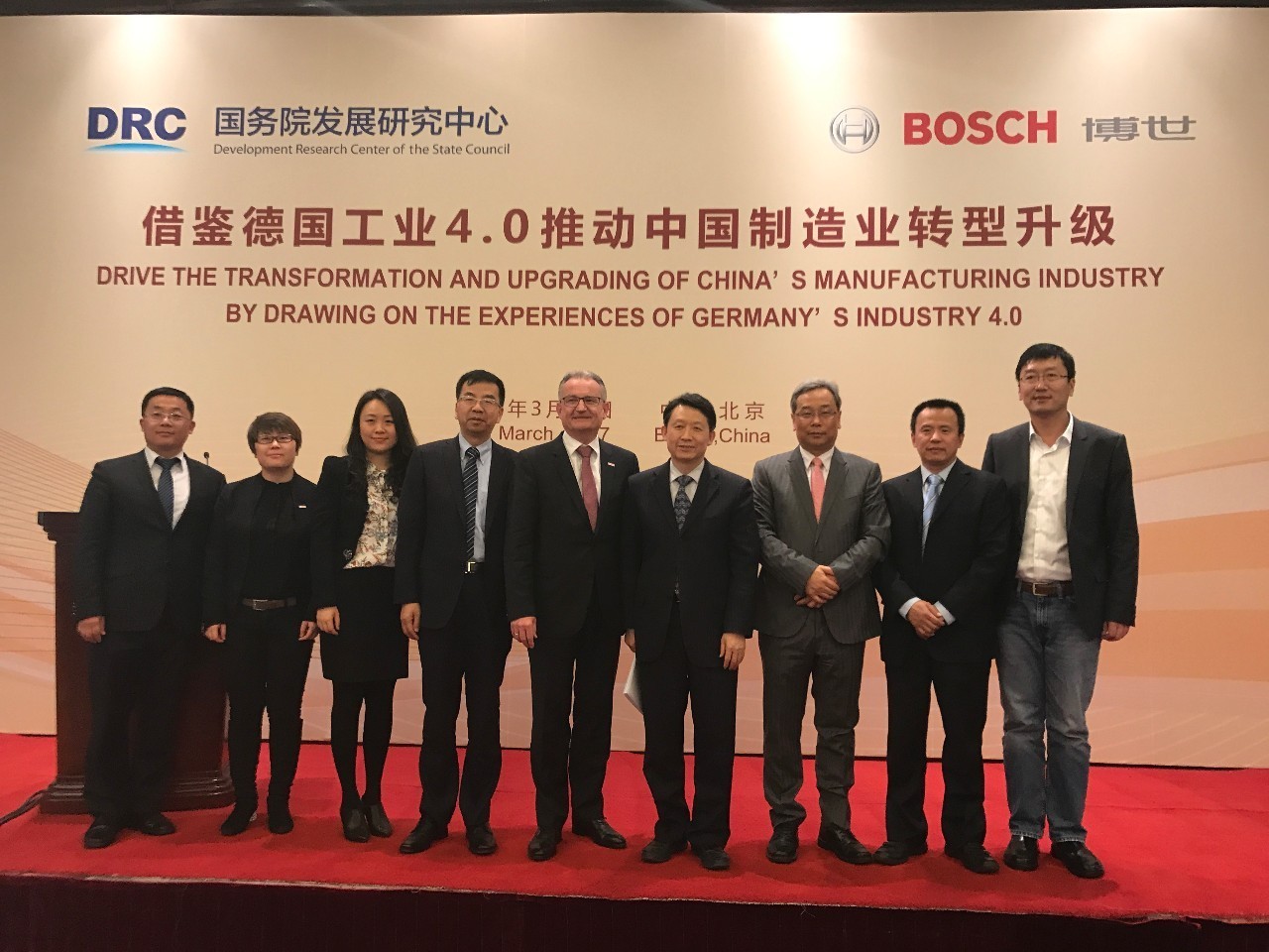 2015年8月,国务院发展研究中心与博世达成合作协议并正式启动研究项目。近日,国务院发展研究中心携手博世发布《借鉴德国工业4.0推动中国制造业转型升级》的研究报告。报告对中国制造业发展现状作了系统、深入的研究,对德国工业4.0作了全面、客观的评价,在此基础上,提出了中国制造业转型升级的战略目标、整体思路和具体的政策建议。