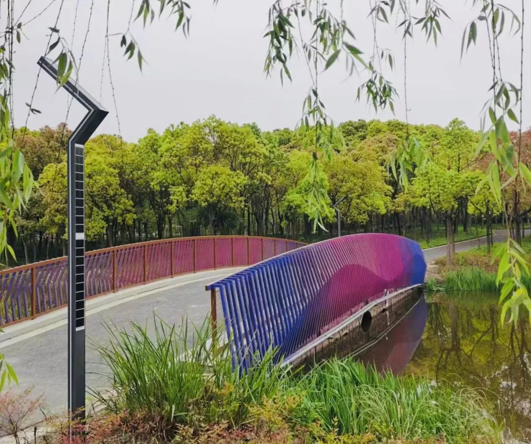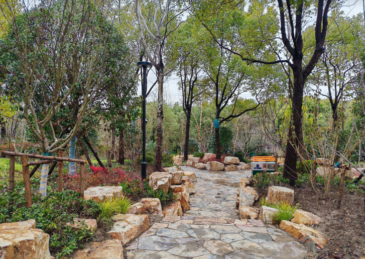 公园前身为外环防护林带,2023年启动改造提升。改造以生态休闲为主题,结合现状植被资源,打造特色生态景观。园内设有镜池听泉、林荫台地、健康步道、疏林草阶、绿荫花径、揽月拾秋、童趣乐园等多处功能场地和观赏景点。园内植物以“春花秋色”为特色,主要品种有海棠、樱花、落羽杉、乌桕、纳塔栎、红枫、鸡爪槭等观花观叶植物,营造季相丰富的特色景观,为周边居民提供一处休闲漫步、交流互动、康体健身的绿色开放共享空间。