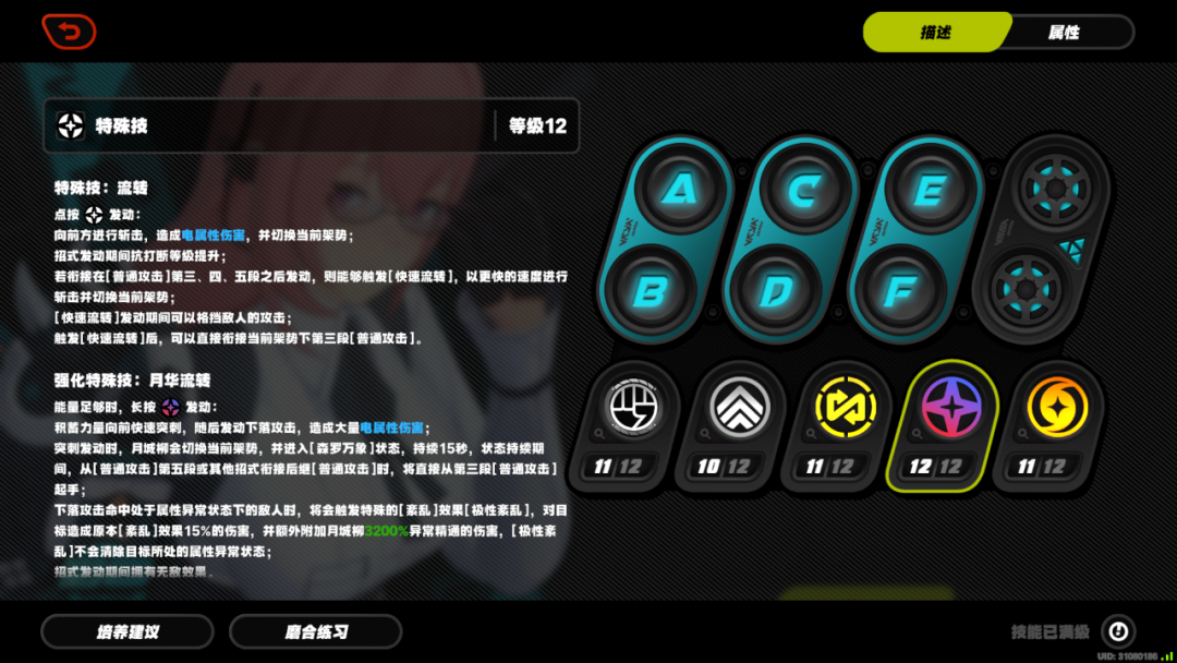 比如1.3新角色月城柳,期小技能“流转”就附带着招架特性,类似于《怪物猎人》中太刀的见切,在攻击来临前点按,便可招架敌人攻击,并为自己附加BUFF,穿插在某段平A后,还可以直接改变连段顺序。