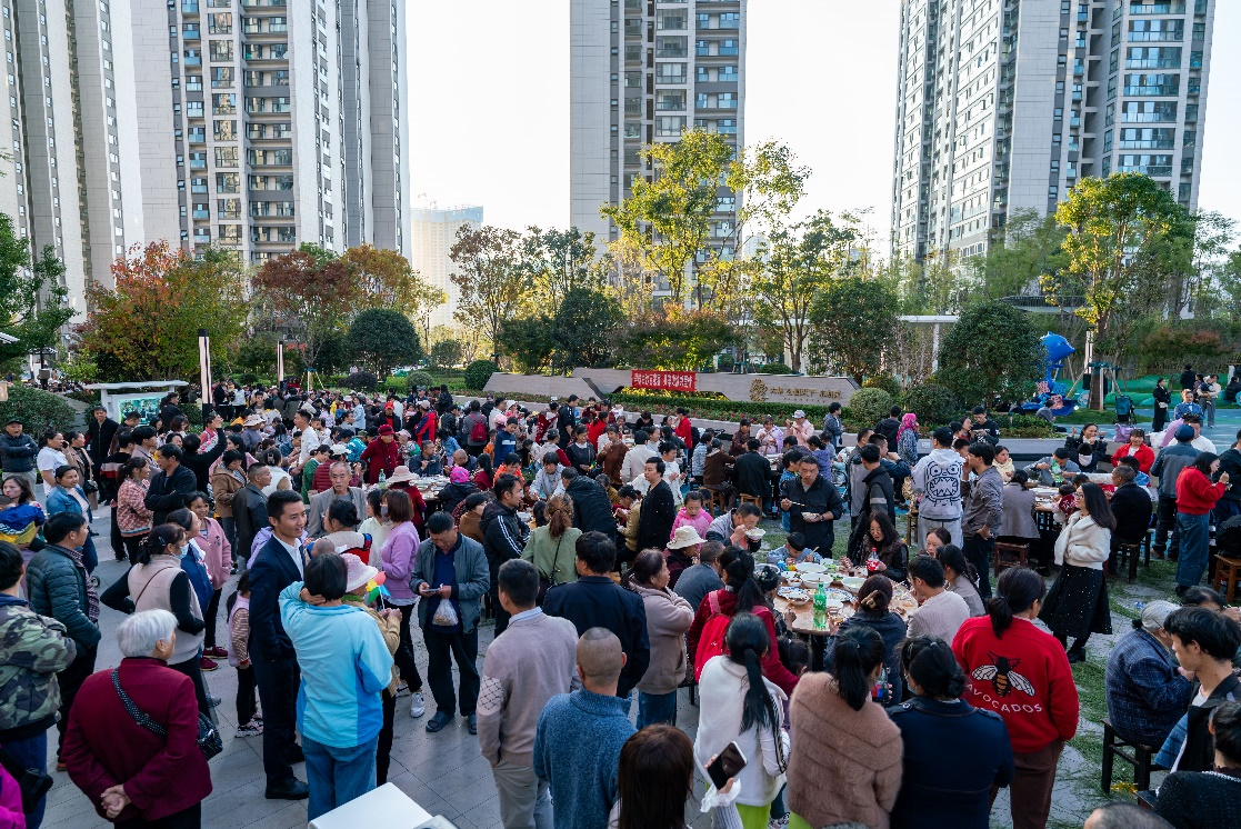 活动现场,欢声笑语、碰杯声此起彼伏,现场其乐融融,业主家人们欢聚一堂,共同享受这场特色鲜明的饮食文化盛宴,感受着大城生活的湖岸烟火气和邻里间的温馨与和谐。