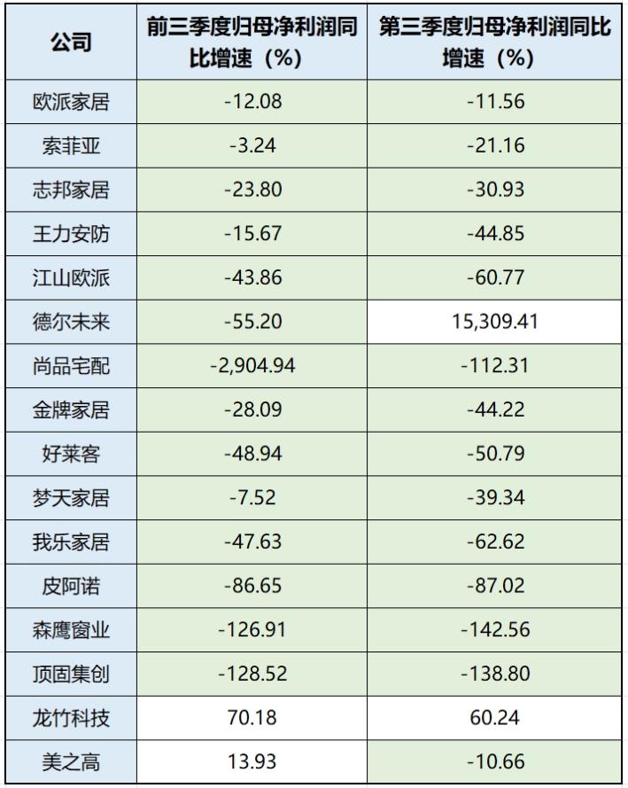 “萧条”到什么程度呢?许多企业三季度净利润出现了剧烈下滑。森鹰窗业下降142.56%,顶固集创下降138.8%,尚品宅配下降112.31%,皮阿诺下降87.02%,我乐家居下降62.62%,江山欧派下降60.77%,好莱客下降50.79%……