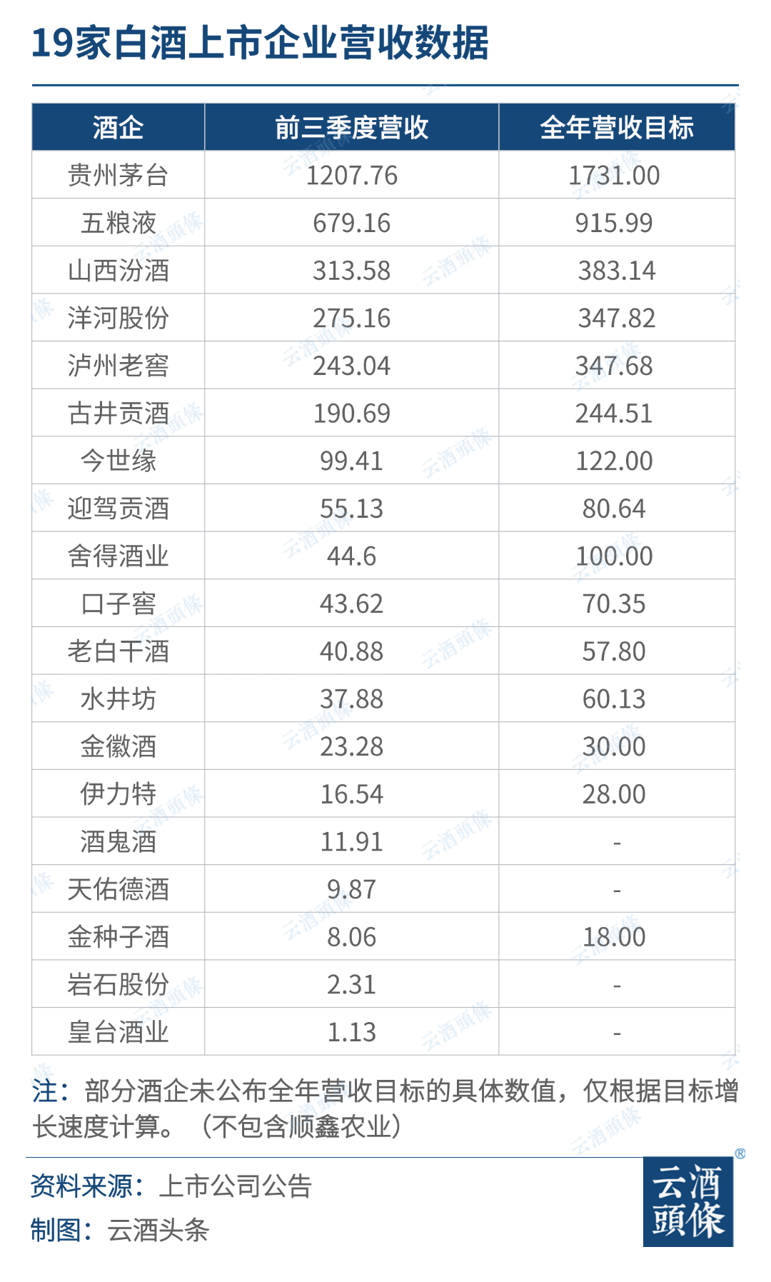 近期,白酒上市公司三季报已悉数公布,在经营业绩分化加剧的显性特征之下,各酒企能否顺利实现年度目标,也表现出了分化的特点。