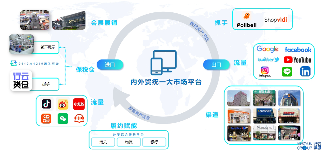 在积极响应中央构建全国统一大市场的系统性改革过程中,行云集团作为中国跨境电商高质量发展的引领者,与地方政府深度融合,携手能力共建,用数字化手段促进内外贸一体化高质量发展,给地方商家带来集约式的一站式数字化平台系统解决方案,帮助政府运营生态,引导政策,发挥集聚效应,带来数据增量,为提升市场主体内外贸一体化发展水平找到新破局点。