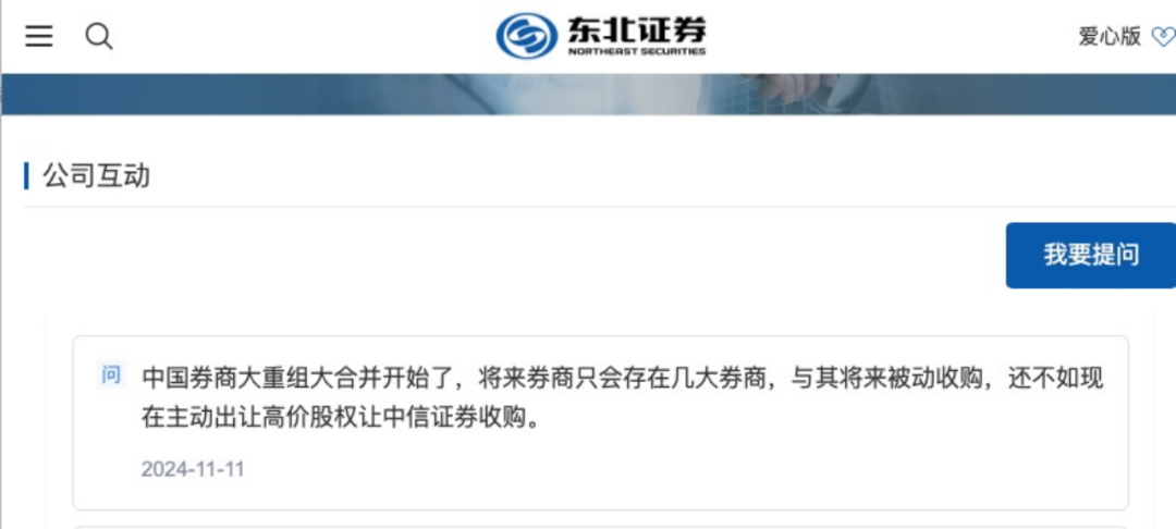 值得关注的是,中信证券是东北证券的第四大股东,在券商并购潮的当下,也有投资者向东北证券提出合并建议。