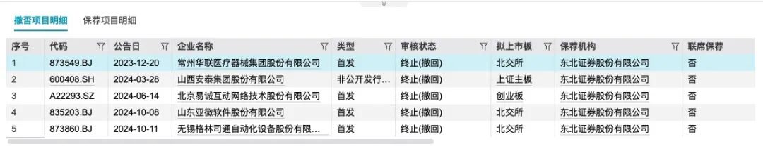 Wind数据显示,年初至今,东北证券保荐项目10个,其中4个项目被撤回,撤否率为40%,尚没有成功承销的上市项目。
