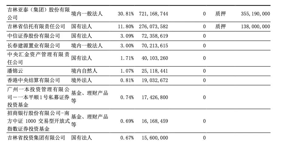 不过,截至2024年三季度末,亚泰集团持有东北证券15.18%已质押,吉林信托持有东北证券5.9%股权已质押。