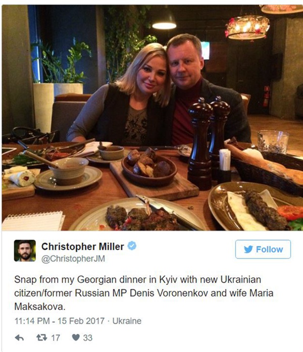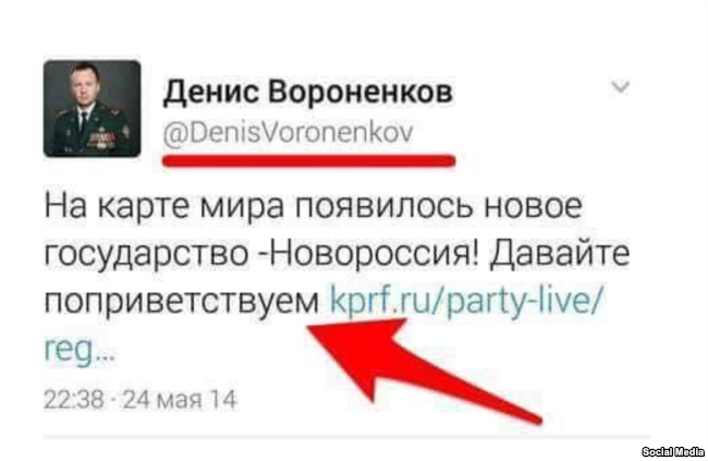 欧洲自由电台也挖出了沃罗年科夫在投票后发布的推文,文中写道“在世界地图上,一个新的国家诞生了——新俄罗斯。让我们欢迎他们。”这则推文现在已经被删除。