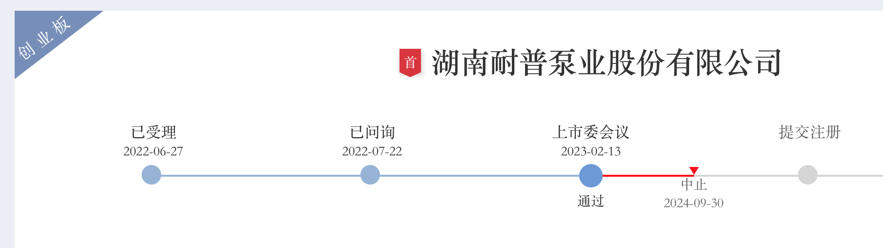 2022年6月27日获得创业板受理,2022年7月22日进入问询环节,2023年2月13日IPO成功过会,如今已经21个月。2024年9月30日,耐普股份因“财务资料已过有效期”需要补充提交而处于“中止”状态中,尚未“提交注册”。该公司的保荐机构是西部证券,预计融资金额4.156亿元。