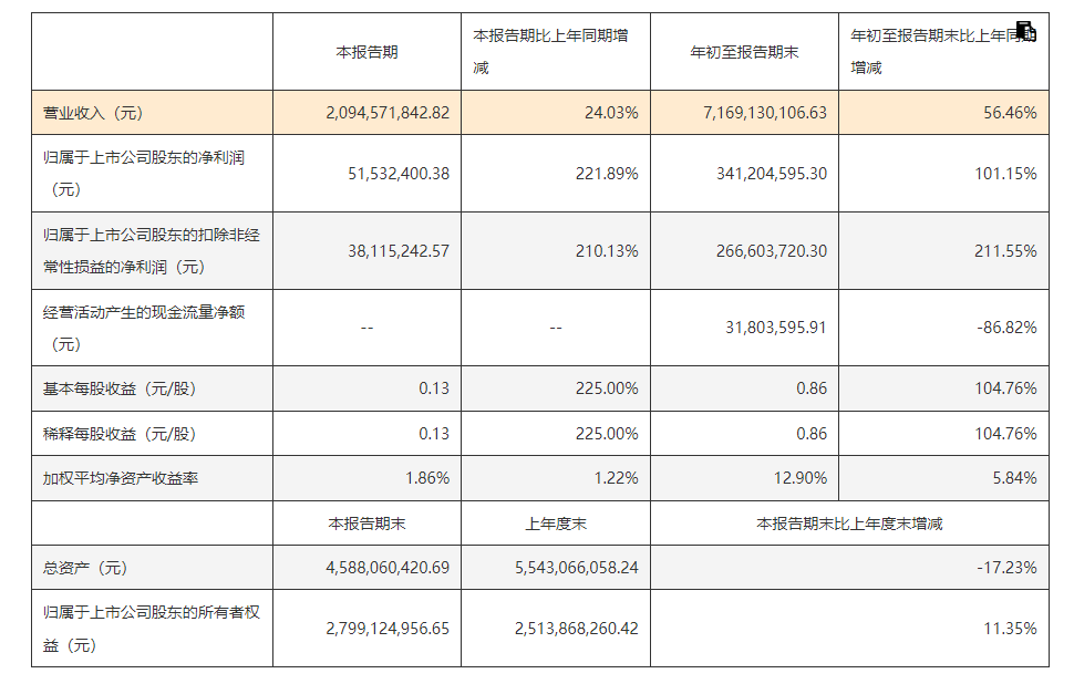 截至2024年第三季度末,三只松鼠实现营收71.69亿元,同比增长56.46%;净利润为3.41亿元,同比增长101.15%。